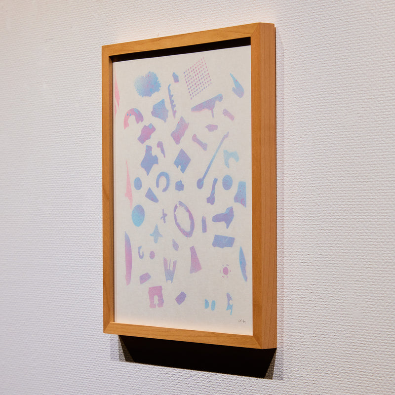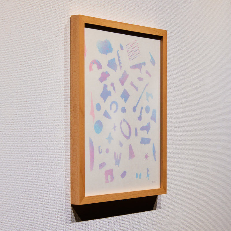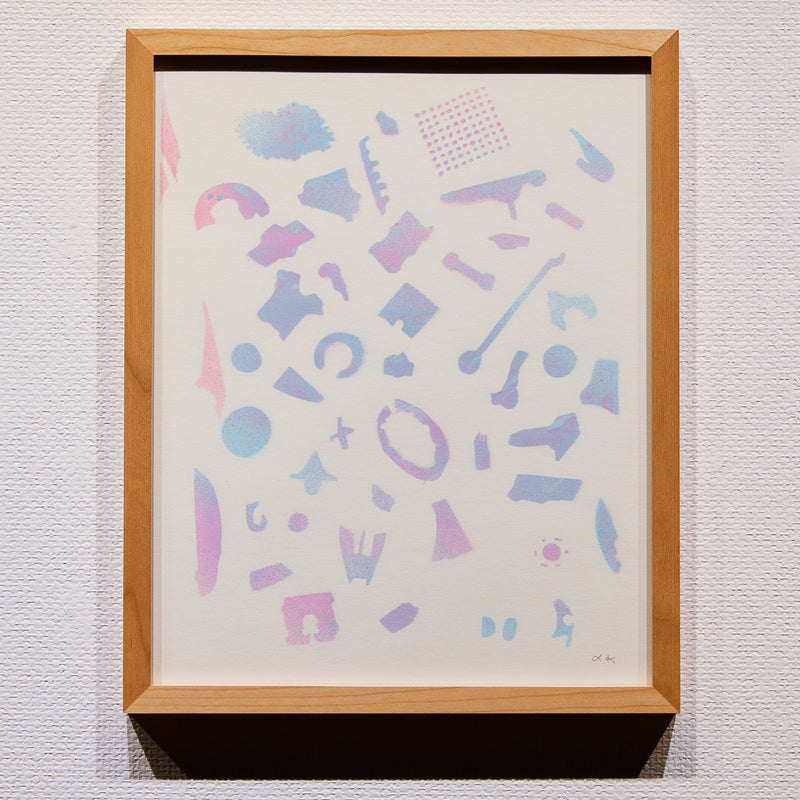 動物の骨のような形の何かが割れた破片。それらを組み合わせると哀愁漂う肖像画のような絵画が現れる。海辺に漂着した小さなプラスチック片から想像し、詩的な表現を試みるステンシル・アーティスト、赤池完介による展覧会「ANTHOLOGIAN」。