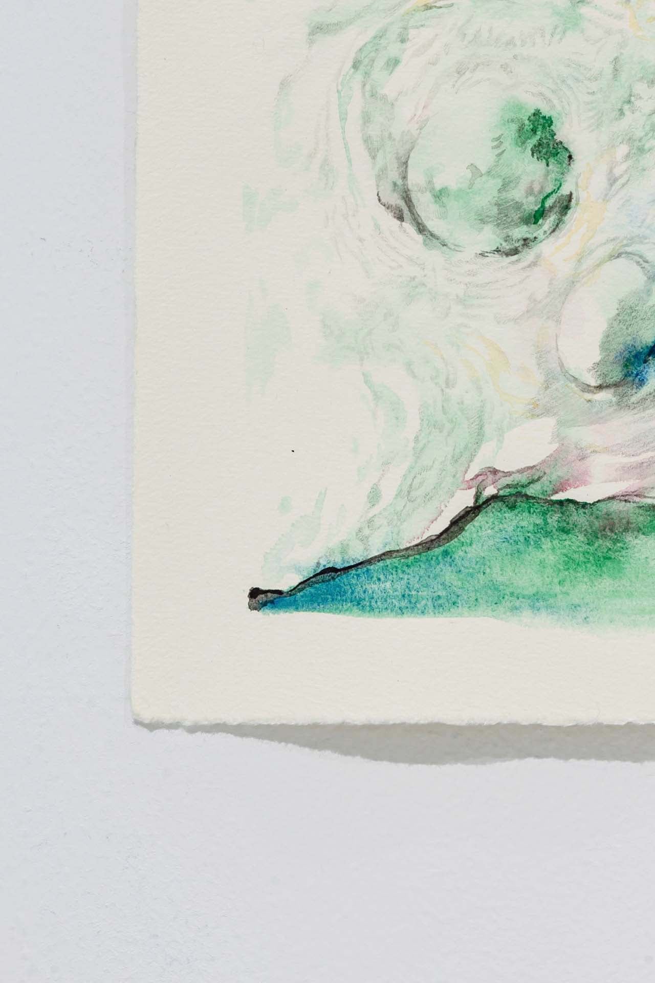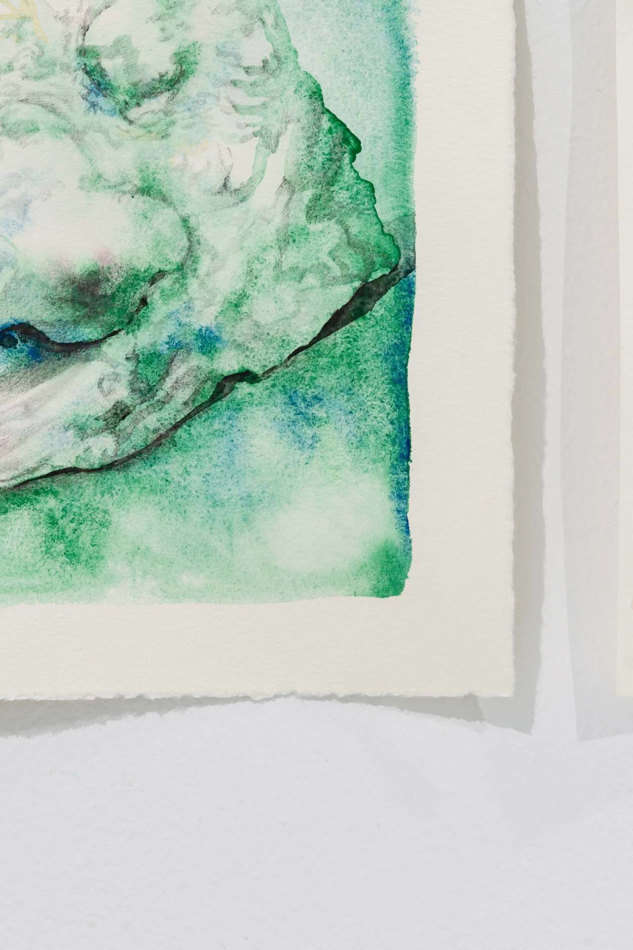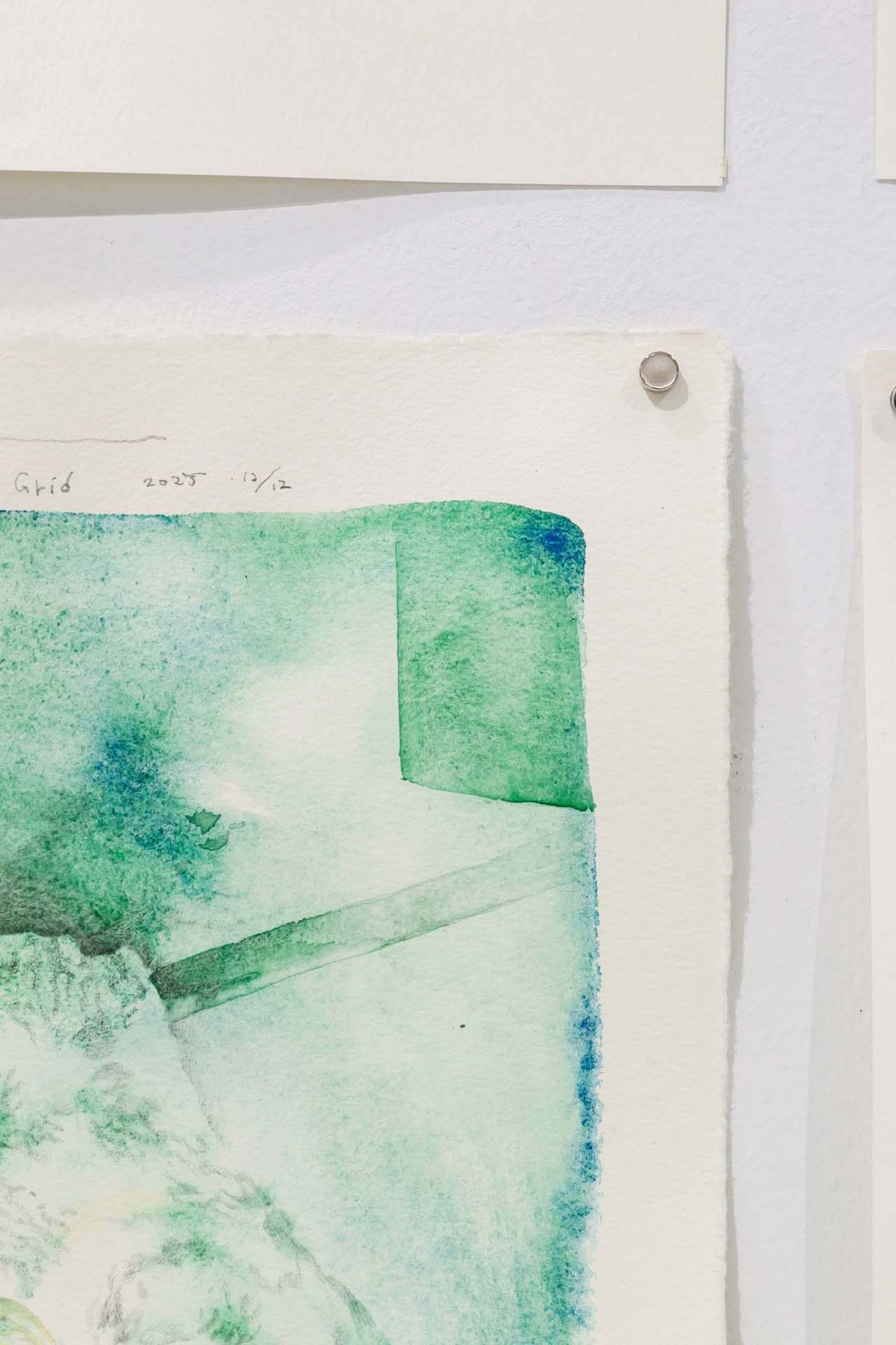 安藤圭汰の作品は、身体と風景が溶け合うようなイメージを通して、生と死の境界が揺らぐ瞬間を描くことを特徴としている。本展《灼熱と腐敗/凍寒と発芽》では、化石標本のような鳥や、山脈や血管を思わせる線描を用い、成長と腐敗、凍結と保存といった異なる生命の時間を重ね合わせる。そうした表現から、生と死のどちらにも偏らない「中庸」の感覚を浮かび上がらせるとともに、新作と同時代作家の作品を併置する構成によって、絵画を他者との関係のなかで変化し続ける表現として提示している。
