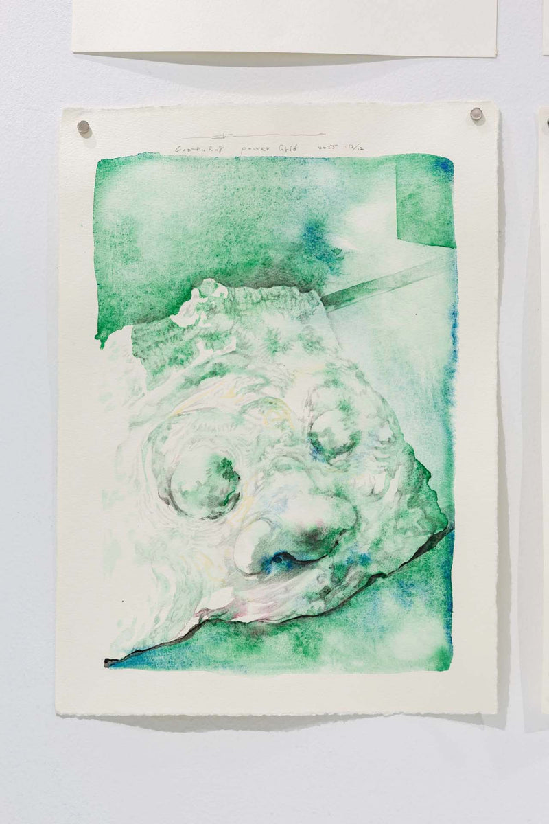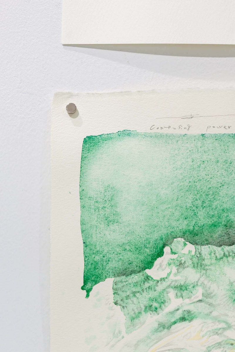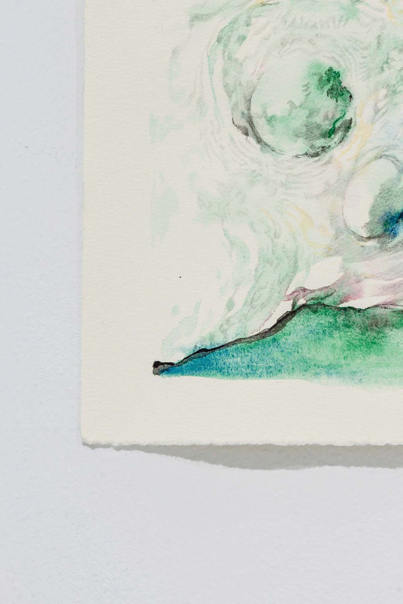 安藤圭汰の作品は、身体と風景が溶け合うようなイメージを通して、生と死の境界が揺らぐ瞬間を描くことを特徴としている。本展《灼熱と腐敗/凍寒と発芽》では、化石標本のような鳥や、山脈や血管を思わせる線描を用い、成長と腐敗、凍結と保存といった異なる生命の時間を重ね合わせる。そうした表現から、生と死のどちらにも偏らない「中庸」の感覚を浮かび上がらせるとともに、新作と同時代作家の作品を併置する構成によって、絵画を他者との関係のなかで変化し続ける表現として提示している。