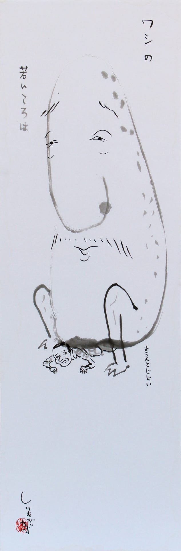 漫画家・しりあがり寿が挑むテーマは「地獄」。会場を覆う大判紙に鬼や妖怪を描いたインスタレーションや墨絵・板絵により、“カワイイ”をフィルターにした現代社会の矛盾を映し出します。恐怖ではなくゆるさをまとった地獄は、安心の裏にある不安や絶望を照らし出し、ユーモアと批評性をあわせ持つしりあがり独自の世界を体験できます。