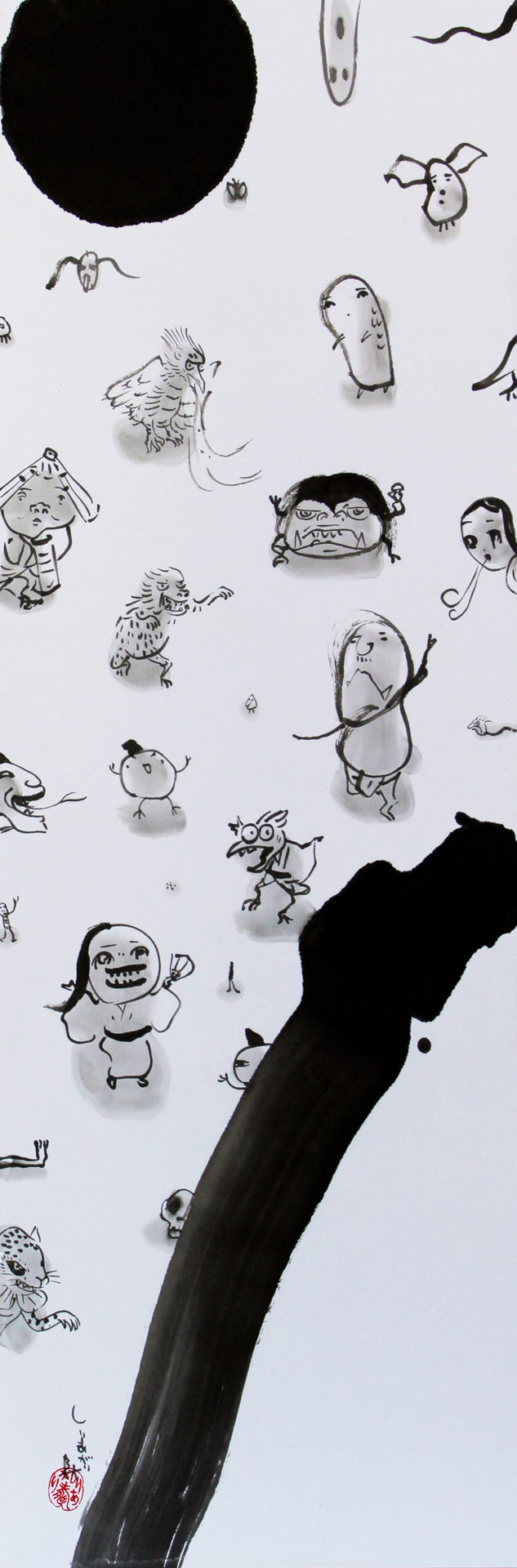 漫画家・しりあがり寿が挑むテーマは「地獄」。会場を覆う大判紙に鬼や妖怪を描いたインスタレーションや墨絵・板絵により、“カワイイ”をフィルターにした現代社会の矛盾を映し出します。恐怖ではなくゆるさをまとった地獄は、安心の裏にある不安や絶望を照らし出し、ユーモアと批評性をあわせ持つしりあがり独自の世界を体験できます。