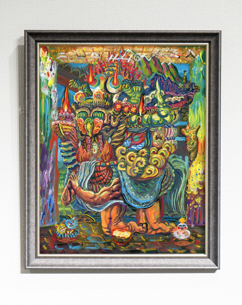 自由奔放なキャラクターを絵具だけで力強く描き上げるタッチと映像のカメラワークのような画面構成、そして博多弁を併記した「博多弁バイリンガル絵本」なる様式を特徴とし、全国各地で行われる本人による読み聞かせ、子ども達と一緒に絵を描くライブペインティングはこれまでに300回以上行われるなど絶大な人気を誇っています。