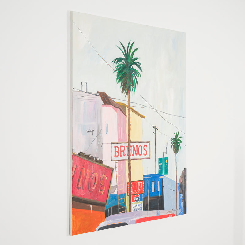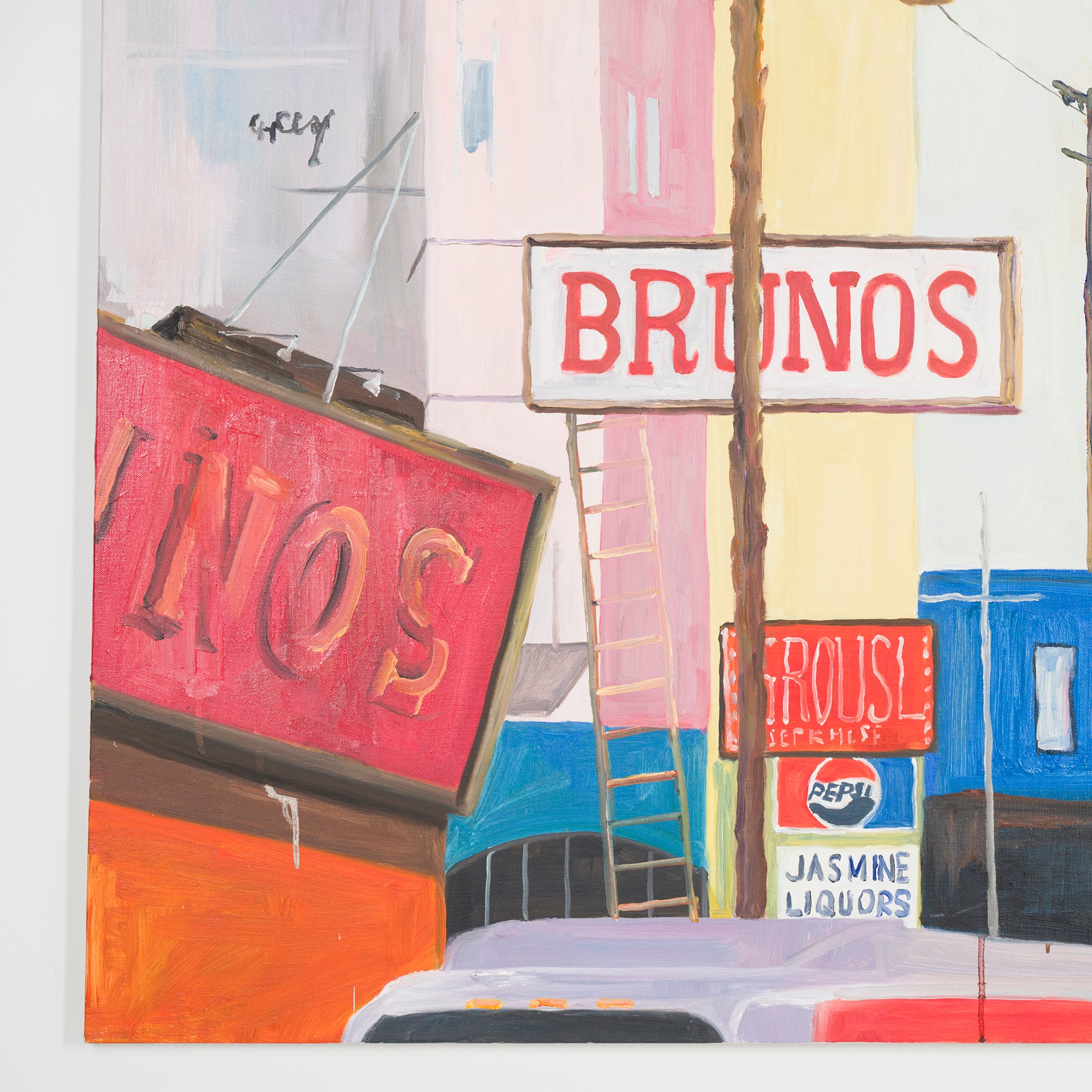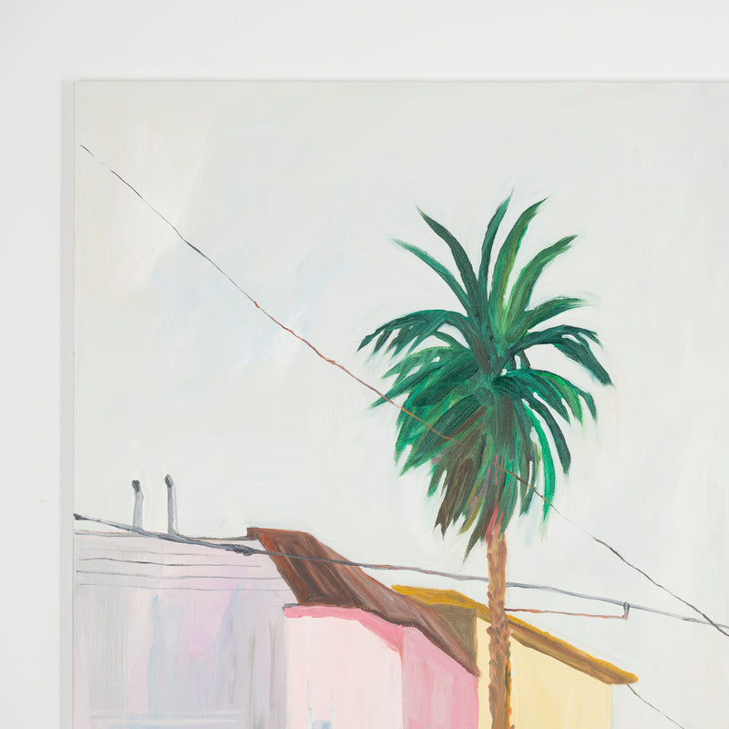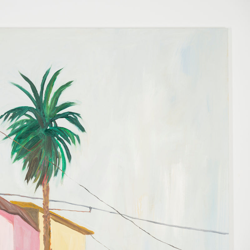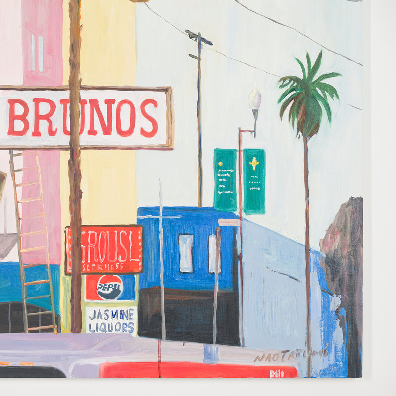 本展では、Googleストリートビューから抽出した世界中の街角の断片を重ね合わせ、どこにも存在しない“交差”の風景を描き出している。標識や看板といった誰にとっても同じ意味をもつ記号に、作家が感じる偶然や記憶の揺らぎが折り重なり、現実と心象が交錯する新しい風景画として立ち上がる。デジタルのバグや異なる時系列のズレといった偶然性を受け入れながら、辰巳は心で感じた色の組み合わせに導かれるように、画面に豊かな奥行きを刻んでいく。
