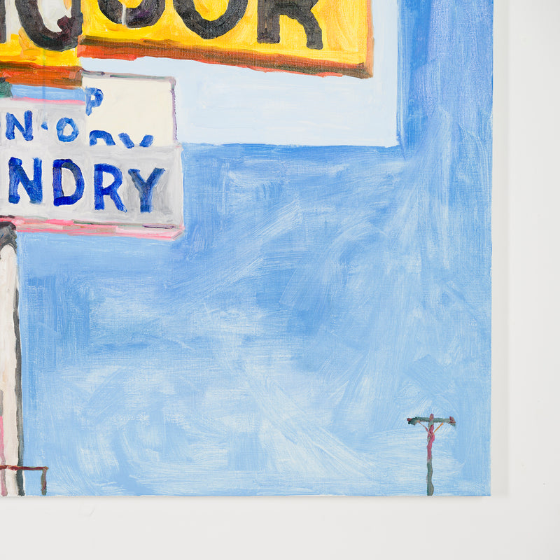 本展では、Googleストリートビューから抽出した世界中の街角の断片を重ね合わせ、どこにも存在しない“交差”の風景を描き出している。標識や看板といった誰にとっても同じ意味をもつ記号に、作家が感じる偶然や記憶の揺らぎが折り重なり、現実と心象が交錯する新しい風景画として立ち上がる。デジタルのバグや異なる時系列のズレといった偶然性を受け入れながら、辰巳は心で感じた色の組み合わせに導かれるように、画面に豊かな奥行きを刻んでいく。
