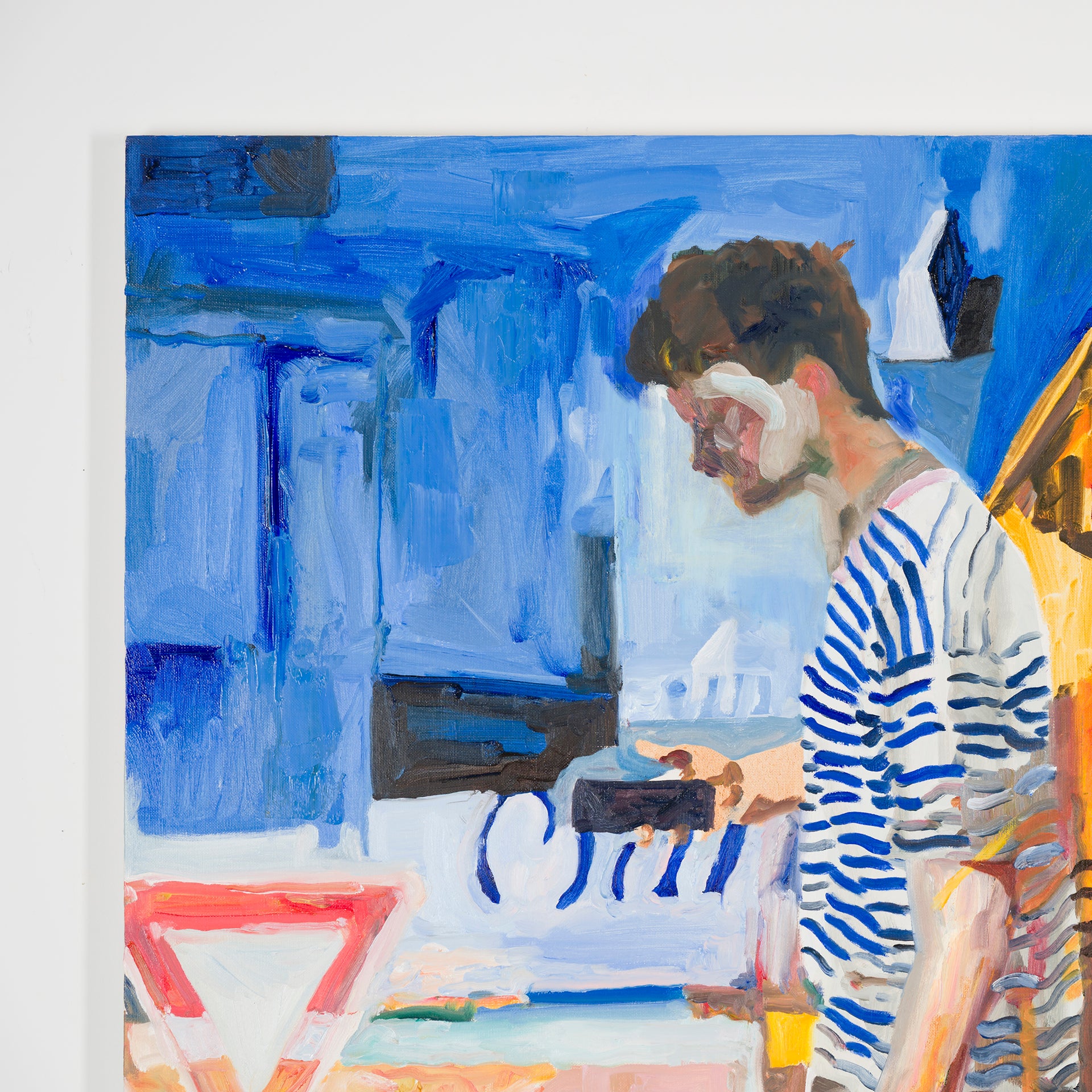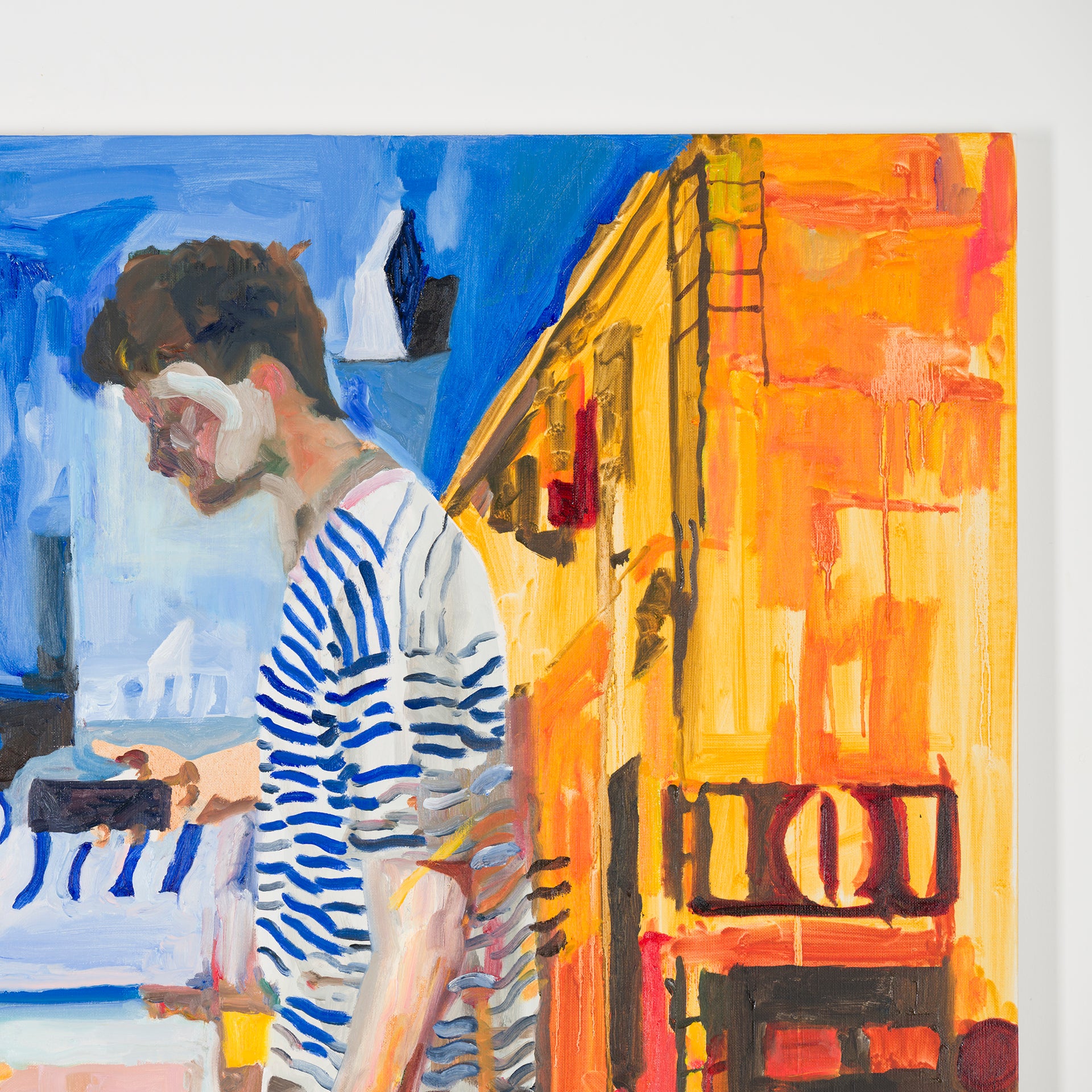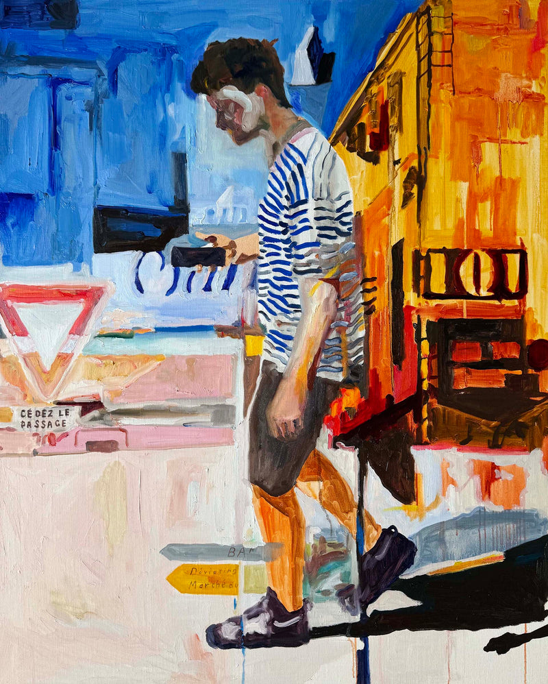 本展では、Googleストリートビューから抽出した世界中の街角の断片を重ね合わせ、どこにも存在しない“交差”の風景を描き出している。標識や看板といった誰にとっても同じ意味をもつ記号に、作家が感じる偶然や記憶の揺らぎが折り重なり、現実と心象が交錯する新しい風景画として立ち上がる。デジタルのバグや異なる時系列のズレといった偶然性を受け入れながら、辰巳は心で感じた色の組み合わせに導かれるように、画面に豊かな奥行きを刻んでいく。