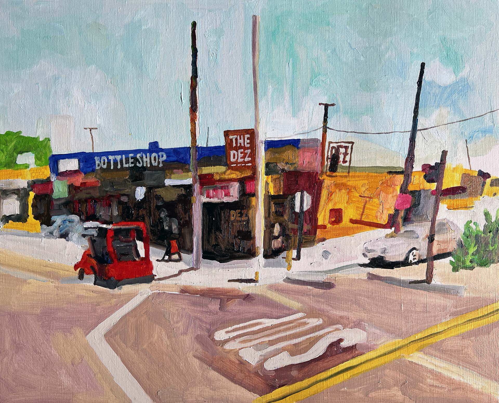 本展では、Googleストリートビューから抽出した世界中の街角の断片を重ね合わせ、どこにも存在しない“交差”の風景を描き出している。標識や看板といった誰にとっても同じ意味をもつ記号に、作家が感じる偶然や記憶の揺らぎが折り重なり、現実と心象が交錯する新しい風景画として立ち上がる。デジタルのバグや異なる時系列のズレといった偶然性を受け入れながら、辰巳は心で感じた色の組み合わせに導かれるように、画面に豊かな奥行きを刻んでいく。