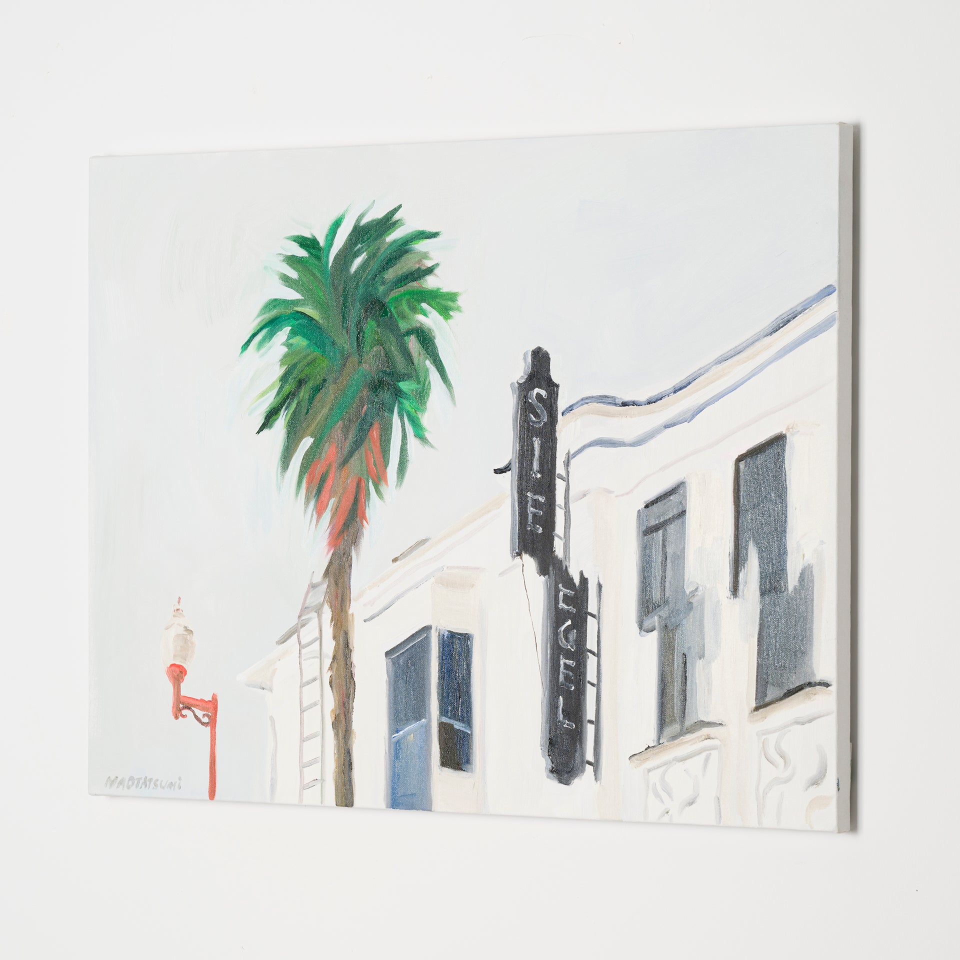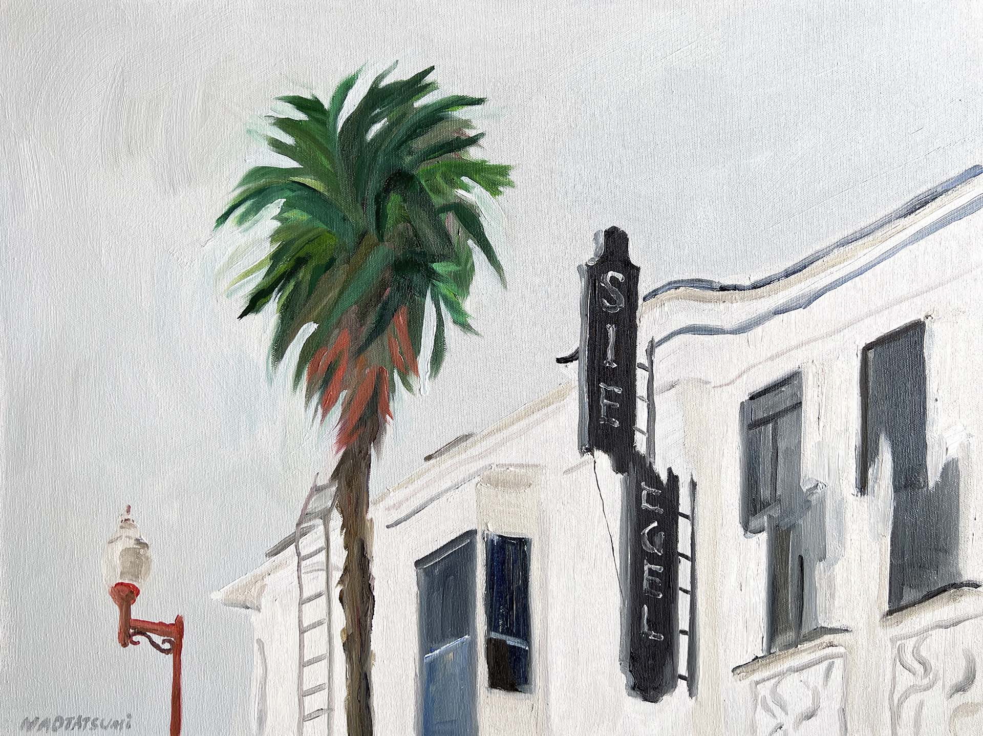 本展では、Googleストリートビューから抽出した世界中の街角の断片を重ね合わせ、どこにも存在しない“交差”の風景を描き出している。標識や看板といった誰にとっても同じ意味をもつ記号に、作家が感じる偶然や記憶の揺らぎが折り重なり、現実と心象が交錯する新しい風景画として立ち上がる。デジタルのバグや異なる時系列のズレといった偶然性を受け入れながら、辰巳は心で感じた色の組み合わせに導かれるように、画面に豊かな奥行きを刻んでいく。
