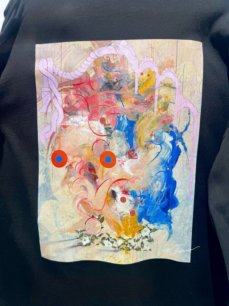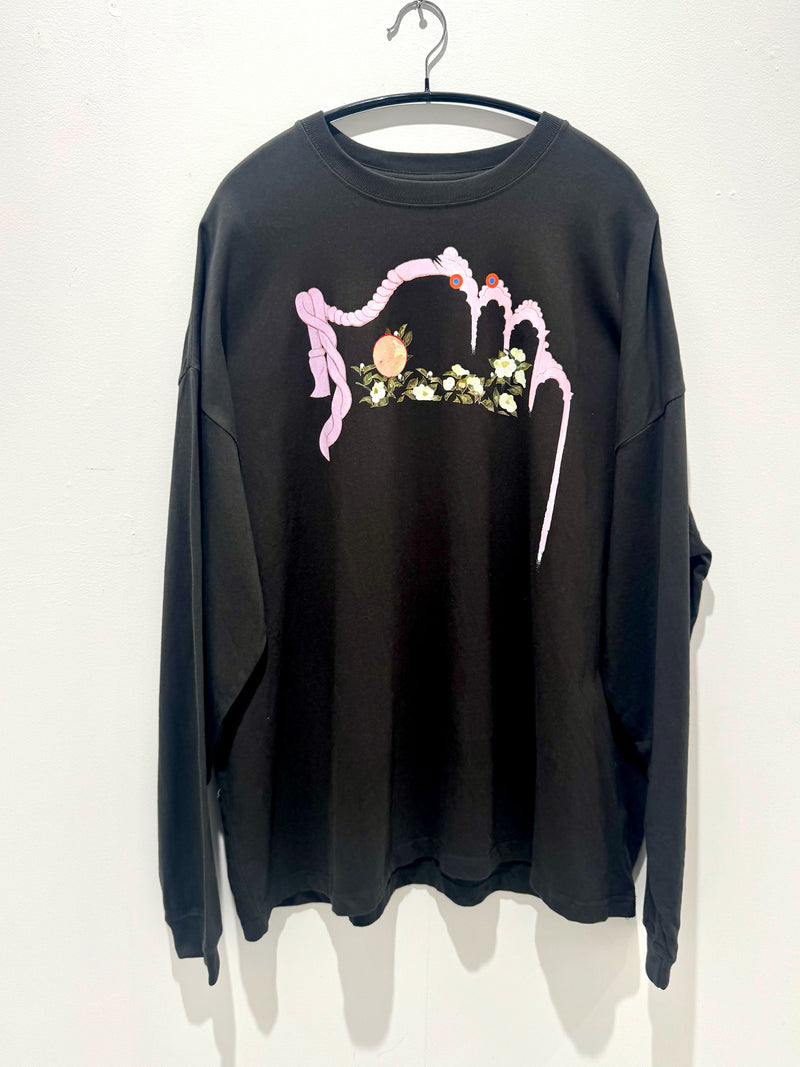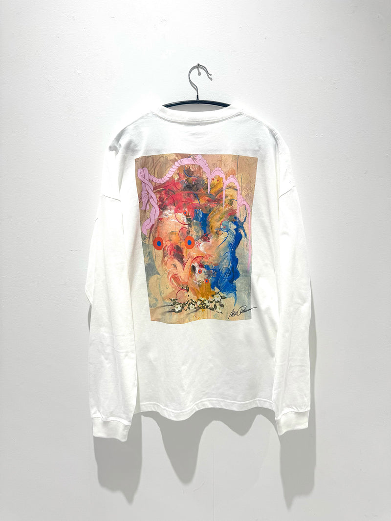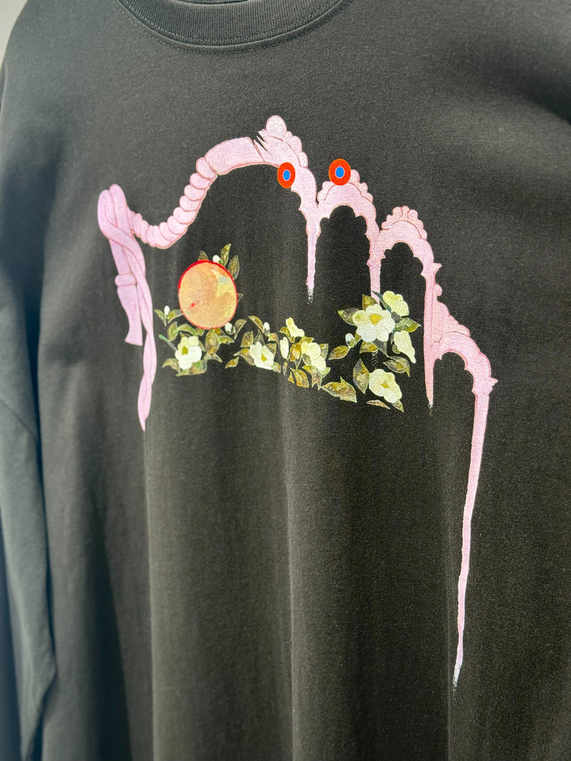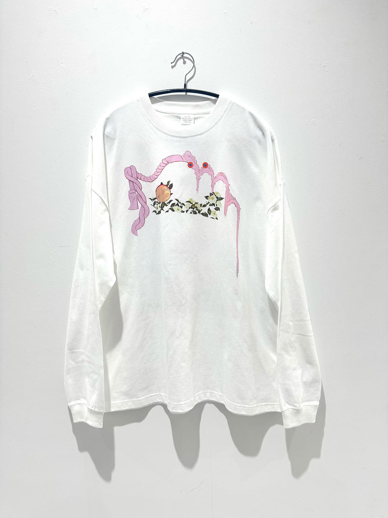 大河紀の《FAMILY》シリーズをモチーフにしたロングTシャツ。サイズはS〜XLの4展開。色はwhiteとsumiの2色からお選びいただけます。受注生産のため、納品は展示終了後約2ヶ月を予定(送料着払い)。