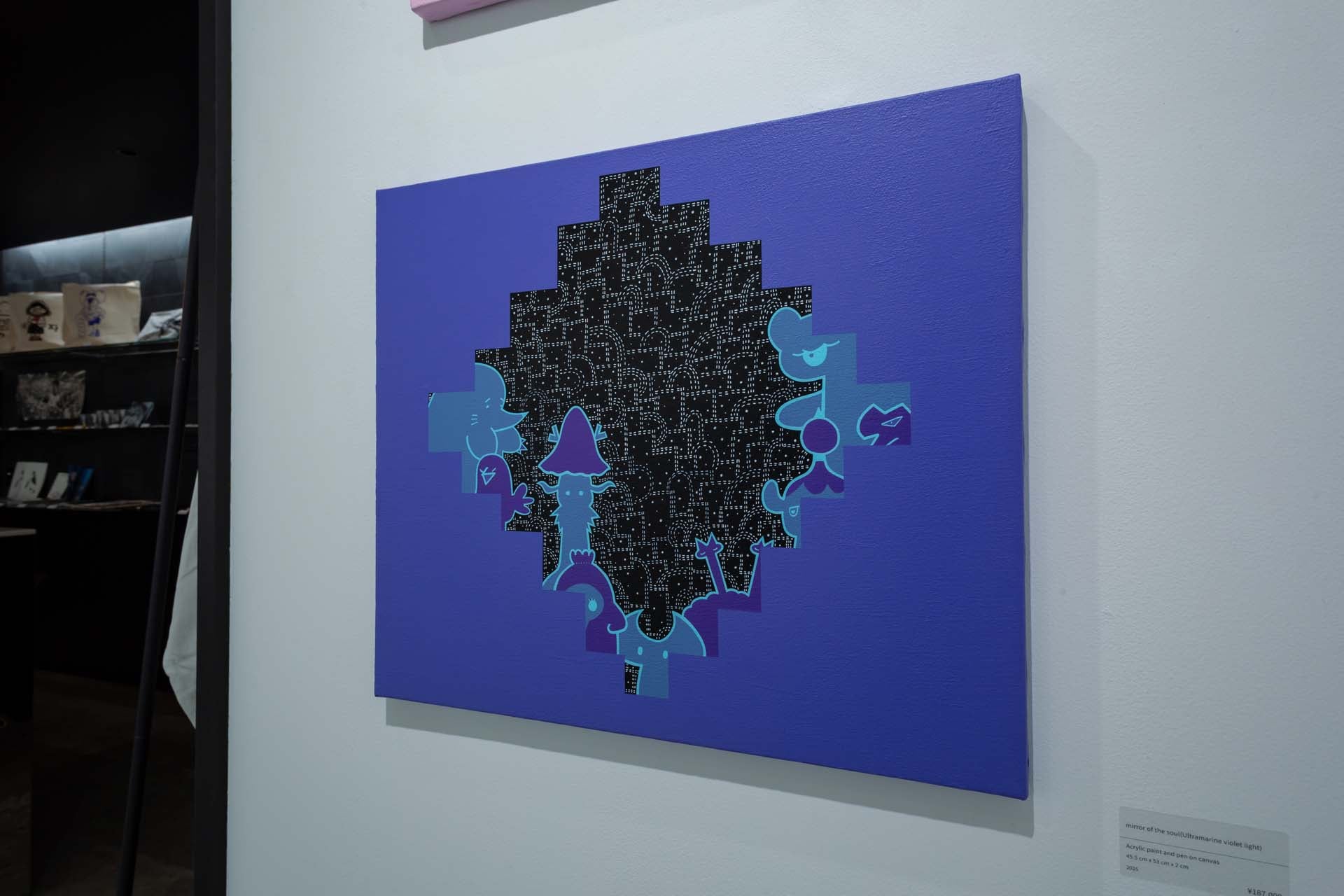 弓指貴弘は、古来より恐れの象徴とされてきた鬼を、ポップなキャラクターとして再構築している。シリーズ《toon demon》や《mirror of the soul》では、情報社会における自我のあり方や、人の内面に潜む不安を静かに映し出す。低明度の色彩と簡潔な構成が生み出す夢幻的な空気には、形なきものへの畏れと日本的な感性が滲む。