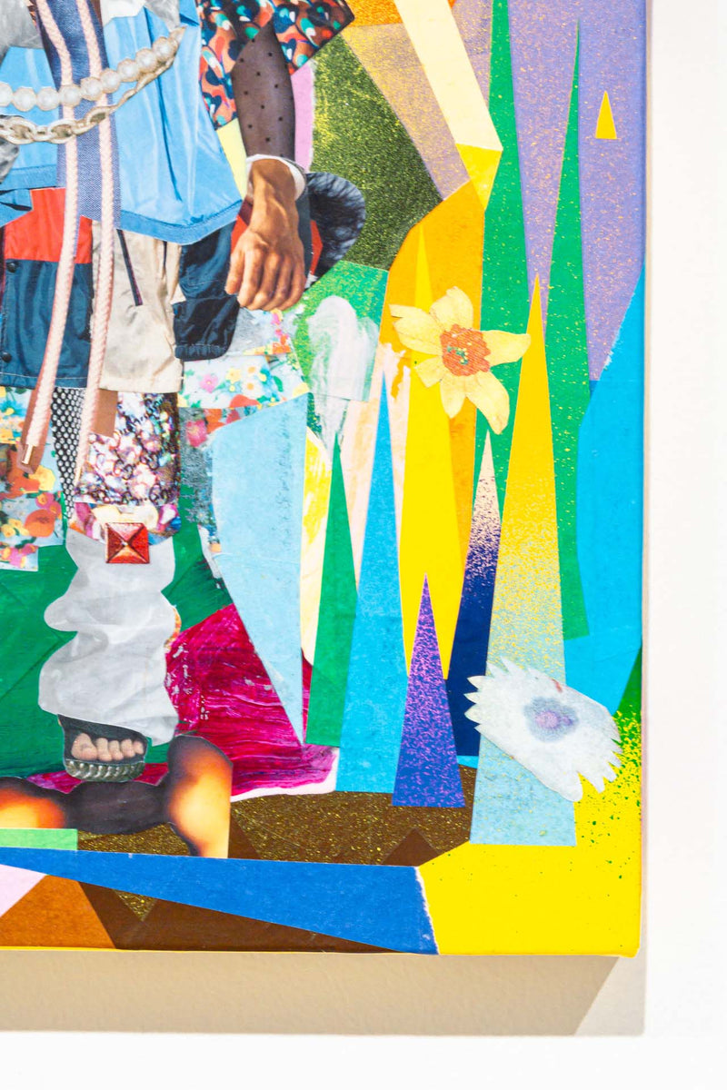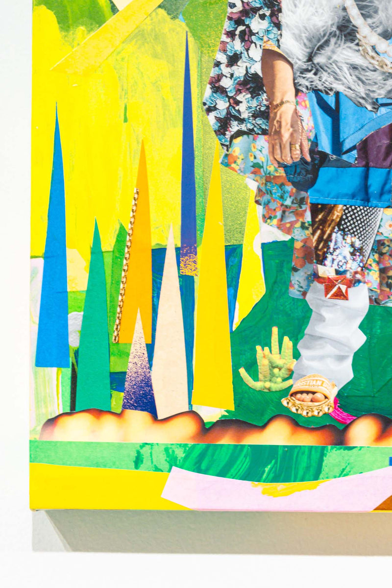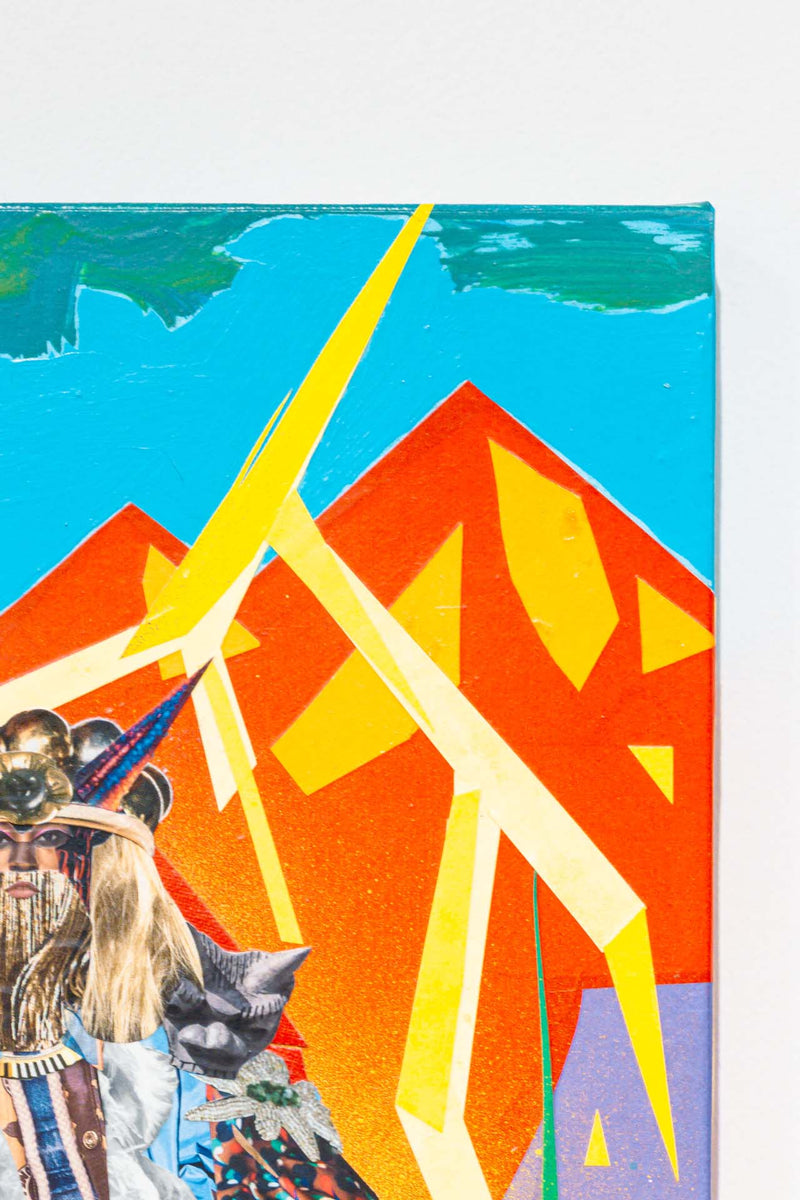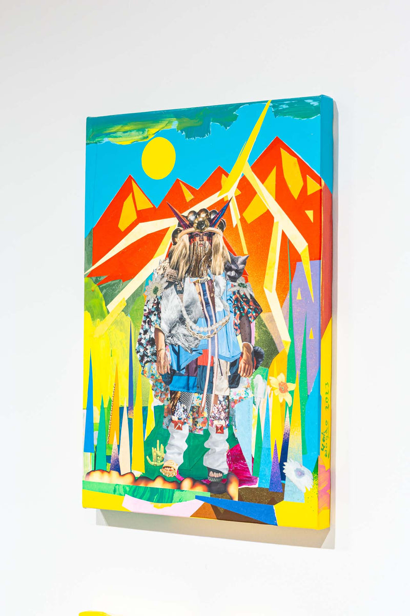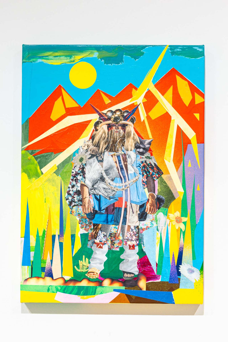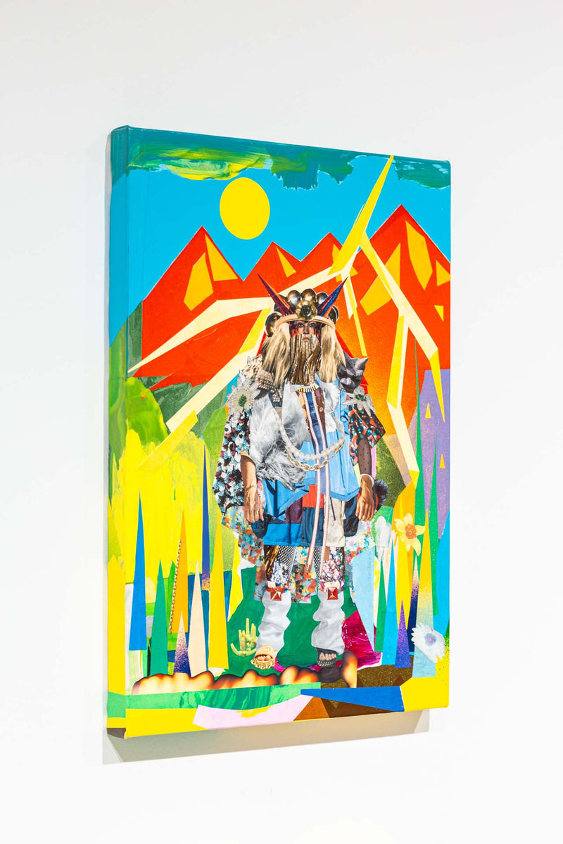 長尾洋 個展「Wild Thought:野生の思考」展示作品。「僕らは未来の先住民」というコンセプトを基に、アフリカ・ナミビアの部族や日本の天狗など世界の伝統的な習俗や儀礼をグラマラスなイメージで浮かび上がらせるコラージュ作品を制作する。