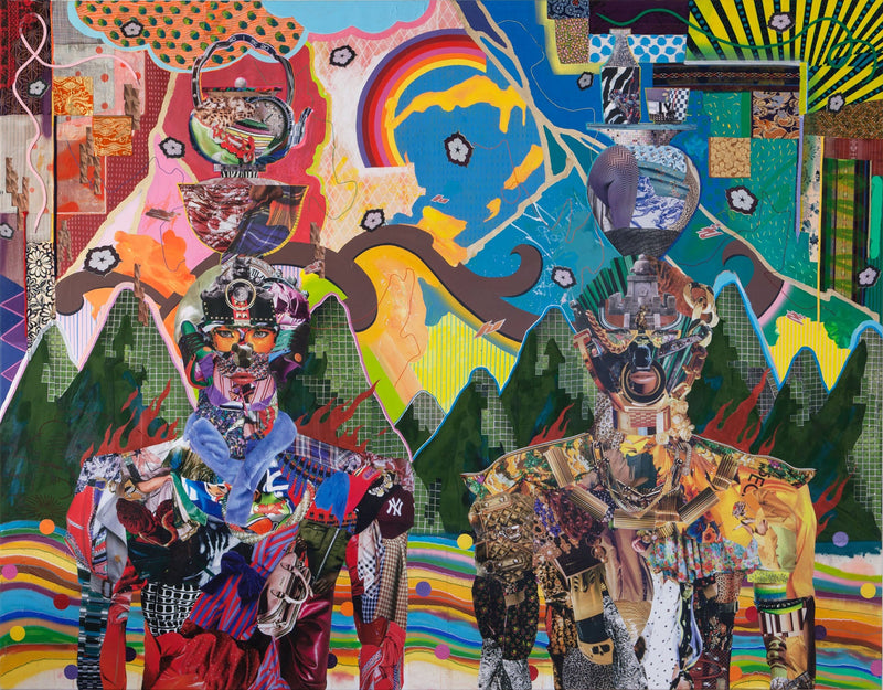 長尾洋 個展「Wild Thought:野生の思考」展示作品。「僕らは未来の先住民」というコンセプトを基に、アフリカ・ナミビアの部族や日本の天狗など世界の伝統的な習俗や儀礼をグラマラスなイメージで浮かび上がらせるコラージュ作品を制作する。