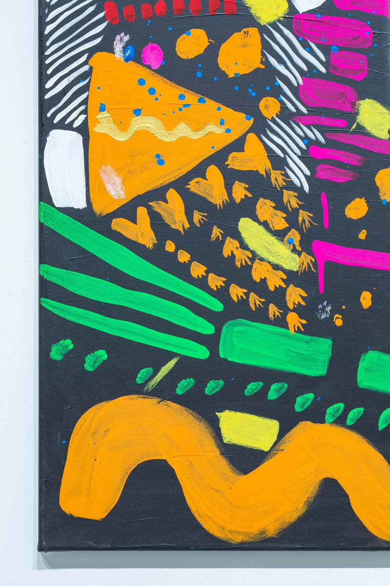 原色やネオンカラーがリズミカルに展開される抽象表現、ポップでフィギュラティブな主題の具象作品。エネルギーに満ちた画面が観る者に強い印象を残すアーティスト、鮎川陽子。